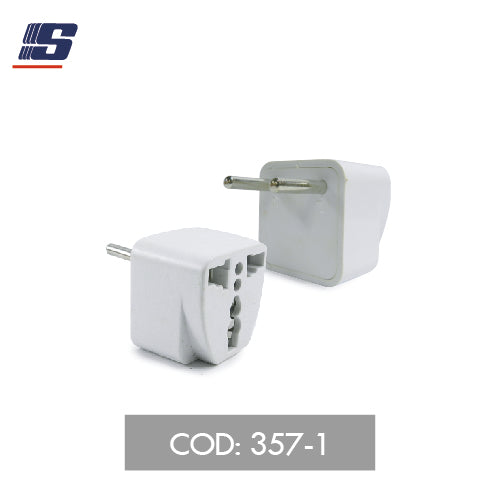 Adaptador europeo pata plana Modelo: Europeo Color: Blanco Rango: 10A 250V Material: PVC Empaque: 1...