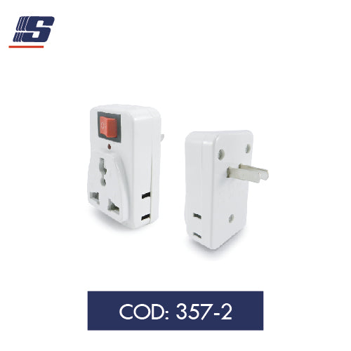 Adaptador con interruptor de 10A Modelo: Europeo Color: Blanco Rango: 10A 250V Material: PVC Empaque:...