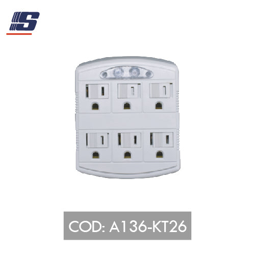 Adaptador eléctrico frontal de 6 servicios Modelo: Multitoma de 6 servicios frontal Color: Gris Rango:...